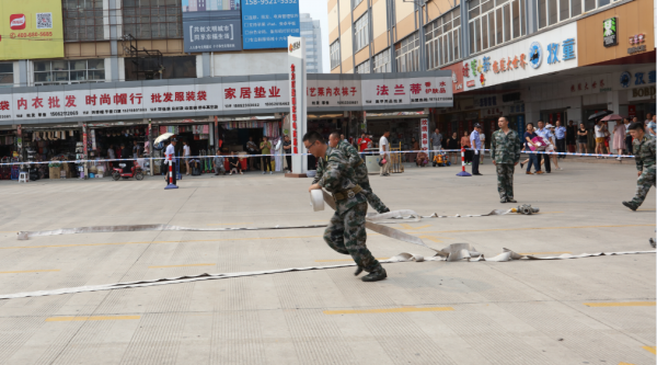 2017年6月28日,宣武集團在商貿(mào)城開展消防綜合演練活動。活動中,集團經(jīng)濟護衛(wèi)隊、市場業(yè)戶、消防隊進行了擒敵拳、班隊列、消防水帶連接、滅油盆火4個項目業(yè)務技能匯報表演,并與云龍消防大隊聯(lián)合進行了一次滅火和應急疏散演練。通過演練,進一步提升了職工、業(yè)戶的消防安全意識和應急處置能力。房管局系統(tǒng)、云龍區(qū)相關(guān)領(lǐng)導及駐市場工商、稅務等領(lǐng)導觀摩演練,并對演練效果給予高度評價。